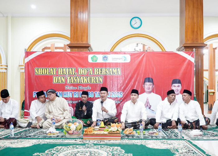 Usai Salat Isya berjamaah, ratusan santri dan santriwati dari berbagai pondok pesantren se-Kabupaten Bojonegoro menghadiri Sosialisasi Empat Pilar MPR RI yang disampaikan oleh Ketua DPC PDI Perjuangan Bojonegoro sekaligus Anggota MPR RI, H. Abidin Fikri, S.H., M.H., pada Rabu (6/8/2025) malam.