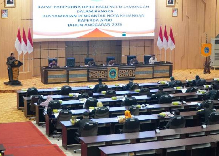 Hal tersebut disampaikan saat eksekutif memberikan jawaban atas pandangan umum fraksi-fraksi di ruang rapat paripurna DPRD Kabupaten Lamongan, Selasa 21 Oktober 2025.