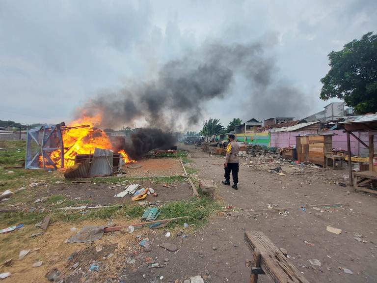 Petugas gabungan membakar pagupon di Petemon.-Oskario Udayana-