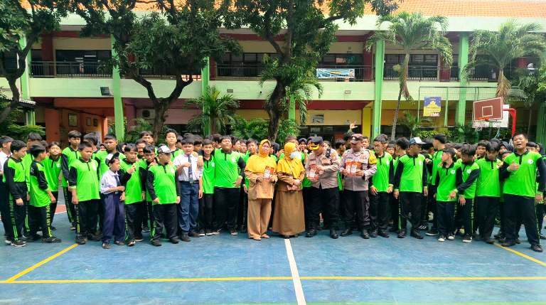 Polsek Simokerto Gelar Sosialisasi Call Center 110 dan Bahaya Kenakalan Remaja di SMPN 41 Surabaya