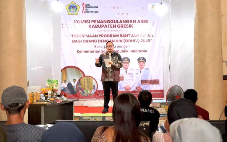 GRESIK, MEMORANDUM.DISWAY.ID - Pemerintah Kabupaten Gresik menyalurkan bantuan langsung tahap pertama bagi Orang Dengan HIV di Kantor Komisi Penanggulangan AIDS Gresik sebagai hasil kerja sama dengan Kementerian Sosial, Kamis 26 Februari 2026.