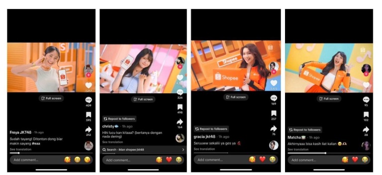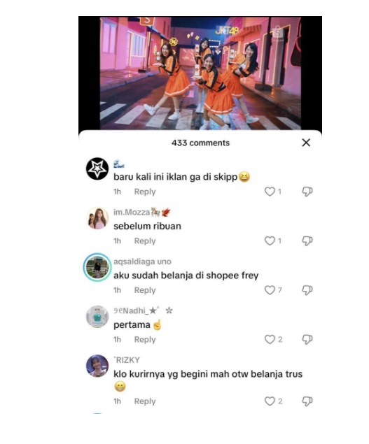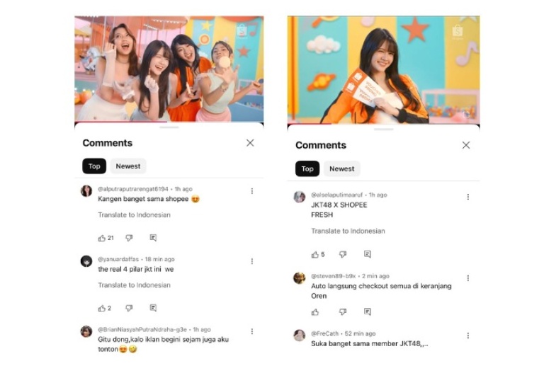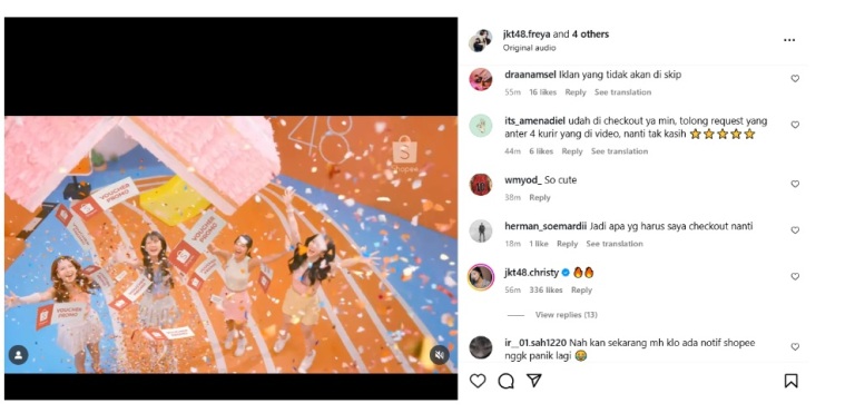 Tak sedikit pula yang mengungkapkan bahwa mereka sangat suka iklan terbaru Shopee dan JKT48 karena visual dan energinya yang menyenangkan. Bahkan saking serunya, para member JKT48 juga membagikan ulang cuplikan MV tersebut di media sosial pribadi mereka, menunjukkan antusiasme dan kebanggaan terhadap kolaborasi ini.