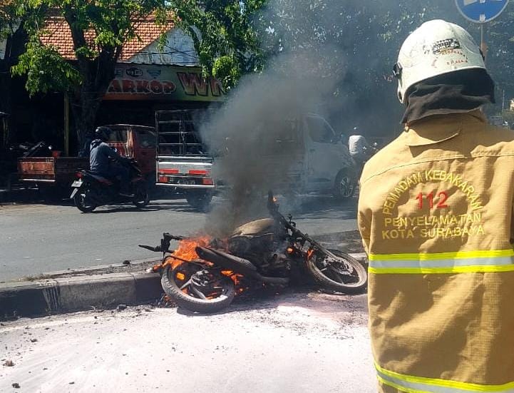 SURABAYA, MEMORANDUM.CO.ID - Sebuah kendaraan roda dua ludes terbakar di Jalan Margomulyo, Tandes, Surabaya, Sabtu 2 Agustus 2025, sekitar pukul 09.30 WIB.