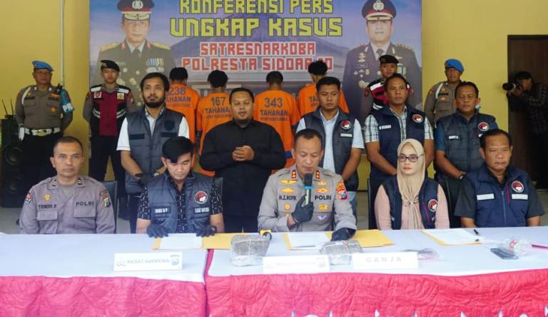 "Pengungkapan kasus ini bermula pada 15 Juli 2025, saat anggota Satresnarkoba Polresta Sidoarjo meringkus dua orang, yakni JRS (34) dan MAS (31) di Desa Entalsewu, Kecamatan Buduran. Dari keduanya diperoleh barang bukti ganja seberat 2,8 kilogram," ungkap AKBP M.Z. Rofik.