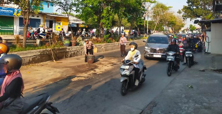 Petugas segera melakukan langkah penanganan untuk memastikan keamanan dan kelancaran lalu lintas.