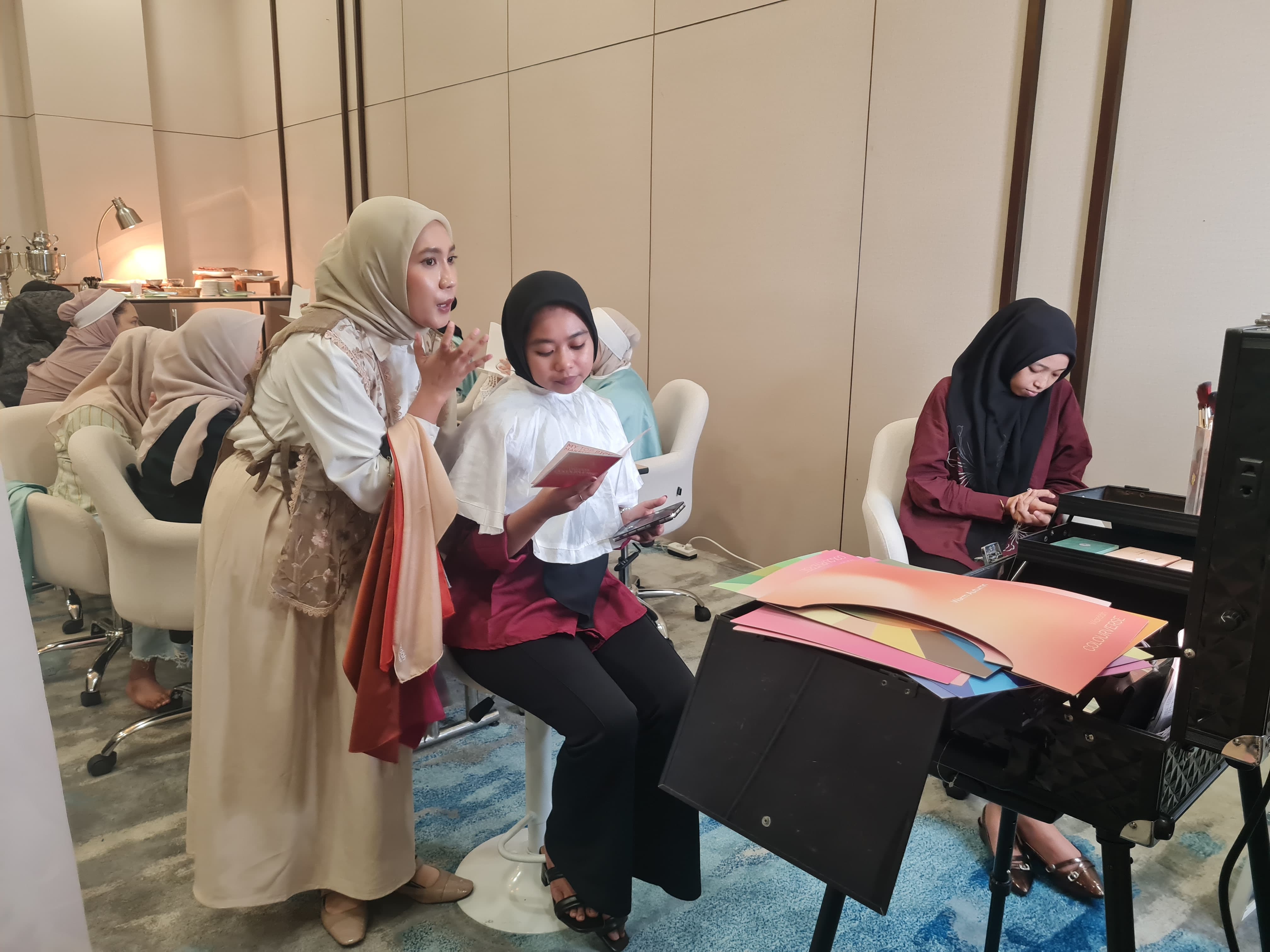 Sesi interaktif ini bertujuan untuk mengedukasi peserta mengenai undertone kulit dan palet warna yang paling cocok, baik untuk make up maupun fashion.