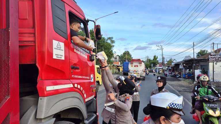 Polresta Banyuwangi tak hanya fokus pada penguraian jalur, tetapi juga memberikan perhatian khusus kepada para pengguna jalan. -Ahmad Syaiku-