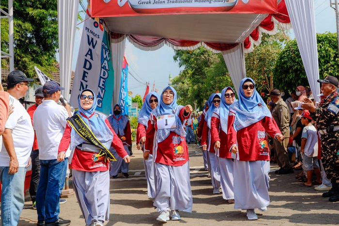 GRESIK, MEMORANDUM.CO.ID - Ratusan warga ikut memeriahkan gerak jalan tradisional Wadeng-Sidayu dalam rangka HUT ke-80 Republik Indonesia, Minggu siang, 10 Agustus 2025. Para peserta dilepas langsung oleh Sekda Gresik Achmad Washil.