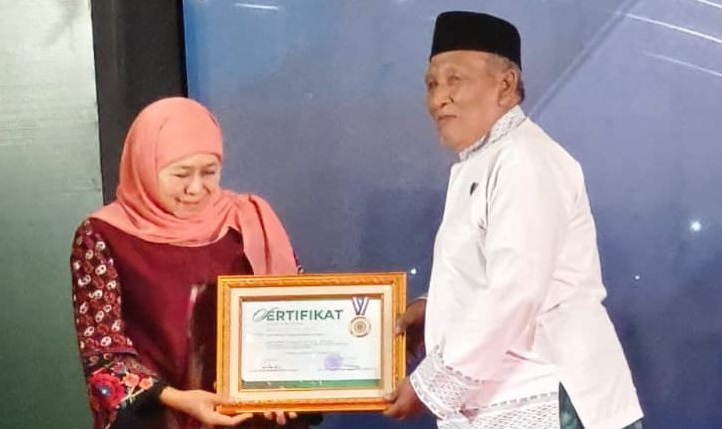 Piagam penghargaan diserahkan langsung oleh Gubernur Jatim sekaligus Ketua Dewan Pertimbangan MUI Jatim, Khofifah Indar Parawansa, kepada Ketua Umum MUI Gresik KH Ainur Rofiq Thoyyib.
