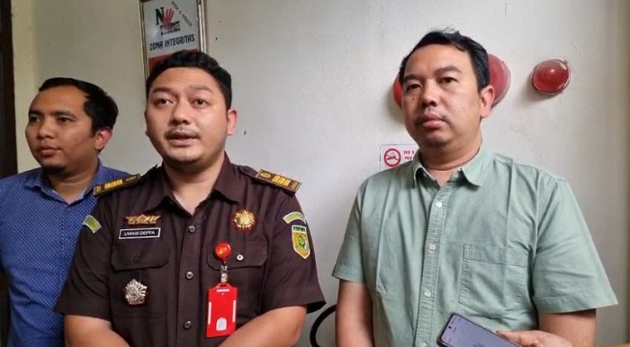 Kasipidum Kejari Gresik Uwais Deffa (tengah) memberi keterangan kepada wartawan di PN Gresik.-Achmad Willy Alva Reza-