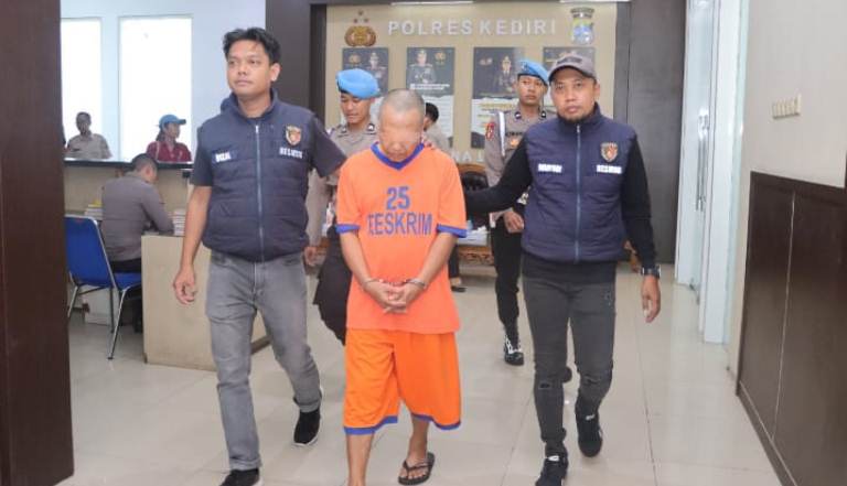 Terduga pelaku P digelandang petugas Satreskrim Polres Kediri.-Ahmad Rifai-