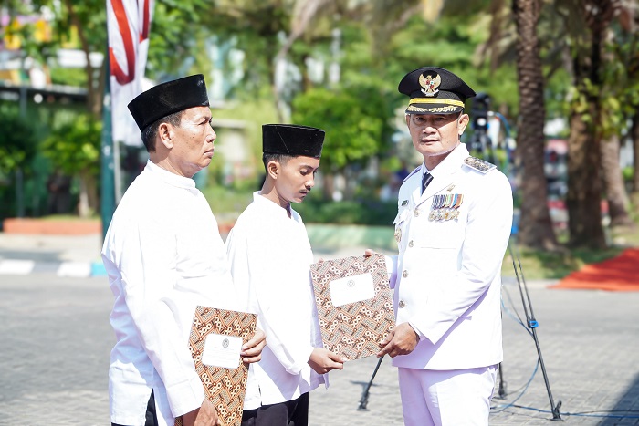 LAMONGAN, MEMORANDUM.CO.ID - Pemerintah Kabupaten Lamongan tandai peringatan Hari Ulang Tahun (HUT) ke-80 Republik Indonesia dengan menyerahkan tali asih kepada veteran pejuang kemerdekaan, eks Narapidana Terorisme (eks napiter), dan remisi kepada warga binaan di Lapas Kelas II B Lamongan.