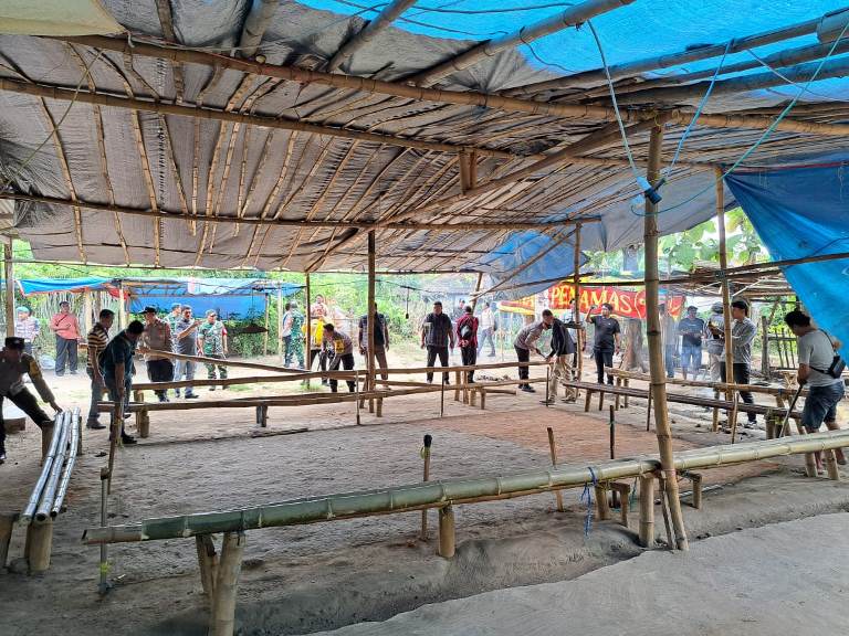 Personel gabungan TNI-Polri melaksanakan penindakan dan pembongkaran tempat judi sabung ayam di Desa Setren, Kecamatan Bendo, Kabupaten Magetan, Kamis 16 Oktober 2025.