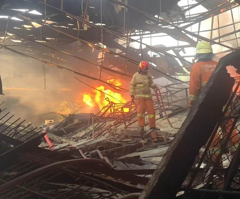 Gudang yang terbakar, terdiri dari 2 lantai. Setiap lantai, terdapat tumpukan bahan baku serta barang siap kirim, dengan ketinggian dua hingga enam meter.