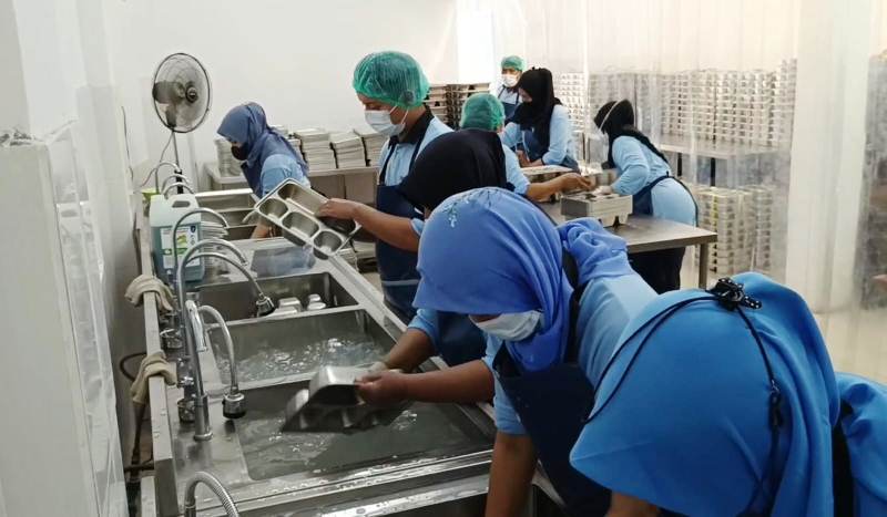 Setiap pegawai diwajibkan mengenakan Alat Pelindung Diri (APD) lengkap selama proses produksi. Dapur ini juga dilengkapi 14 tungku aktif, jauh lebih banyak dari dapur MBG standar, guna mempercepat proses masak tanpa mengorbankan mutu.
