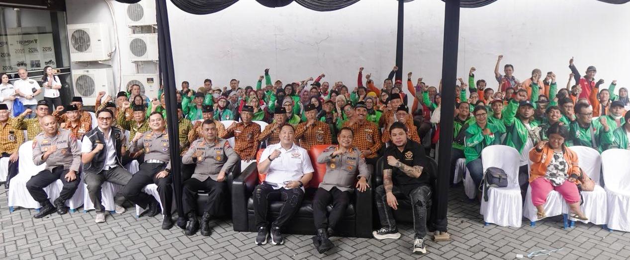Kapolrestabes, Ketua HDCI Jatim dan Surabaya berbaur dengan para ojol dan veteran.--