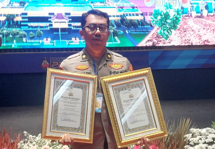 Polres Nganjuk berhasil meraih dua penghargaan pada Rapat Kerja Teknis (Rakernis) SDM Polda Jatim yang digelar di Hotel Golden Tulip Holland Resort Batu.-Hms/Supriyanto-