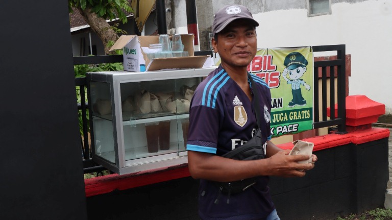 Nasi bungkus diletakkan di etalase depan kantor agar mudah diambil siapa saja yang membutuhkan.