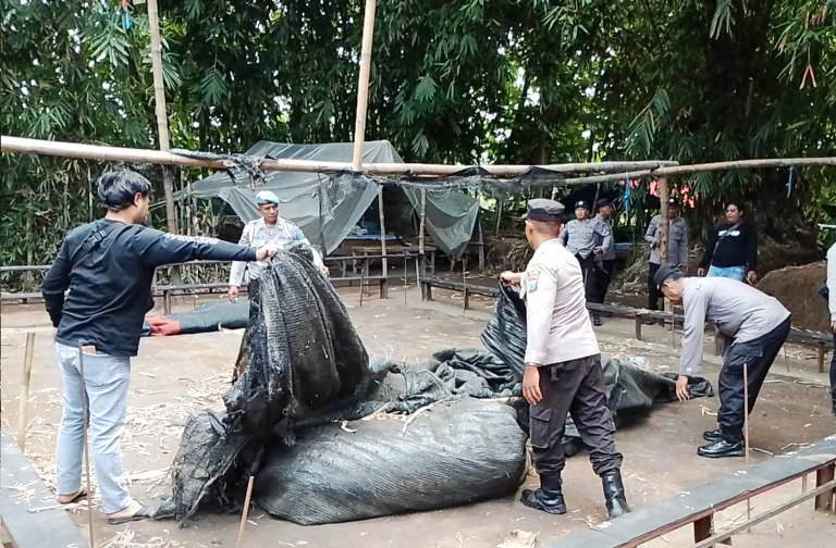 Fasilitas arena sabung ayam di Desa Klurahan yang dibakar petugas gabungan dari Polsek Ngronggot bersama Unit Resmob Polres Nganjuk.-Supriyanto/Iskandar Zulkarnain-