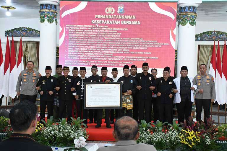 Kapolda Jatim menyampaikan apresiasinya atas kehadiran lengkap peserta baik dari jajaran forkopimda maupun para tokoh masyarakat dan perwakilan perguruan pencak silat.
