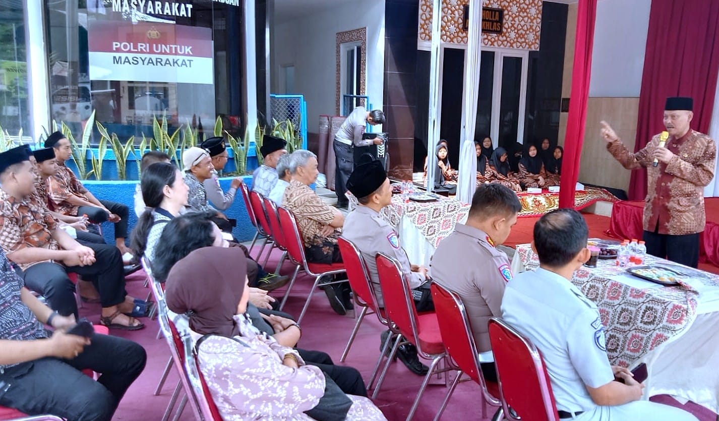 Doa dipimpin Ustadz Dr. KH M. Anas Fauzi, dihadiri jajaran pejabat Satlantas, perwakilan Jasa Raharja Cabang Malang, masyarakat sekitar, serta mitra Unit Gakkum.