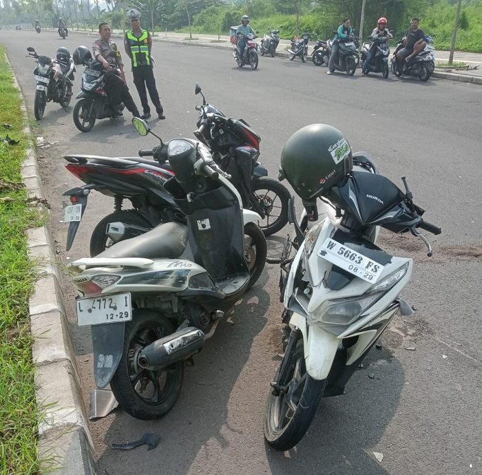 "Kemudian Vario putih tersebut mendahului motor Mio. Karena tidak sampai menyalip, akhirnya menabrak mobil Xpander. Dilanjutkan mobil berhenti mendadak, sehingga motor Vario hitam menabrak mobil dari belakang," katanya.