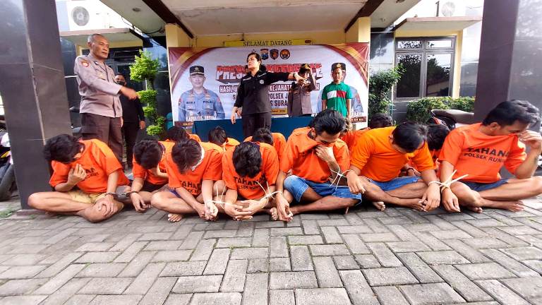 SURABAYA, MEMORANDUM.CO.ID - Tim Antibandit Polsek Rungkut melibas komplotan pencurian kendaraan bermotor (curanmor). Total, ada 11 orang diamankan dan ditetapkan menjadi tersangka. Tidak tanggung-tanggung, dalam aksinya itu, mereka berhasil beraksi di 41 lokasi.