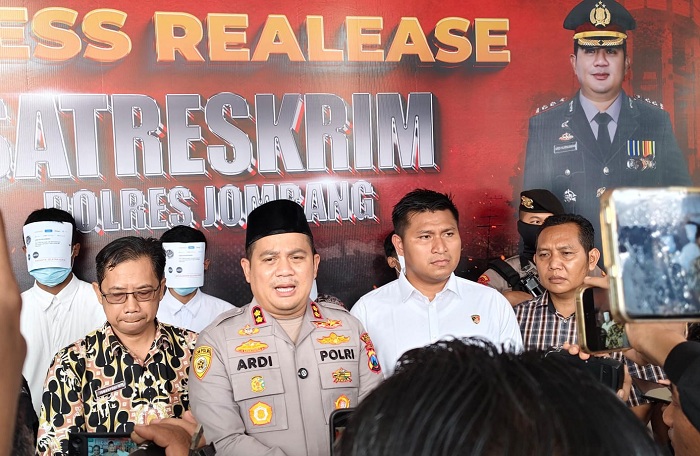 Kapolres Jombang AKBP Ardi Kurniawan didampingi Kasatreskrim AKP Margono Suhendra rilis perkara. -Hermawan S-