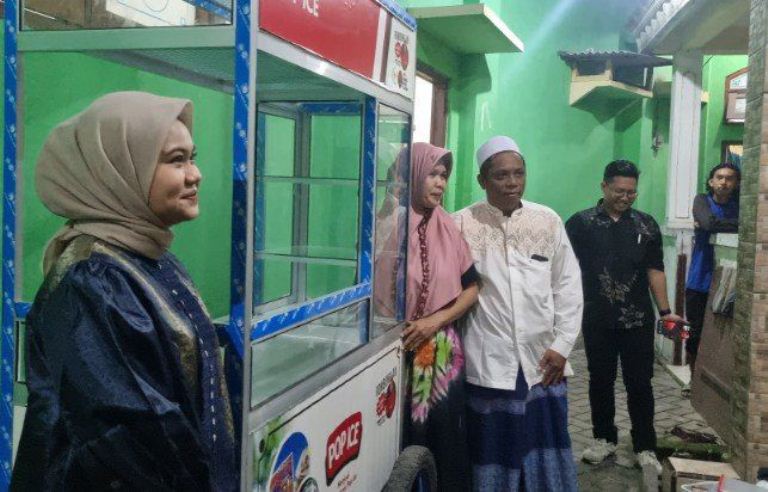 Senyum pun terkembang di wajah Zainul Arifin. Pedagang yang biasa berjualan di Alun-alun Gresik itu menerima rombong gratis berwarna putih dari Nila Yani, Sabtu 12 April 2025.
