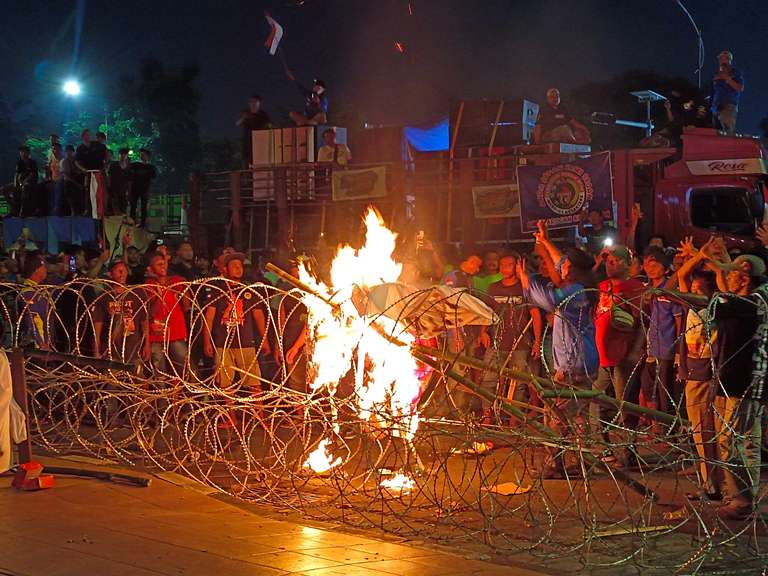 Keranda yang dibakar massa menjadi simbol kekecewaan para sopir terhadap nasib mereka yang merasa terpinggirkan. Tak hanya itu, ketegangan juga sempat terjadi ketika beberapa oknum massa melemparkan botol minum plastik ke arah petugas keamanan yang berjaga.