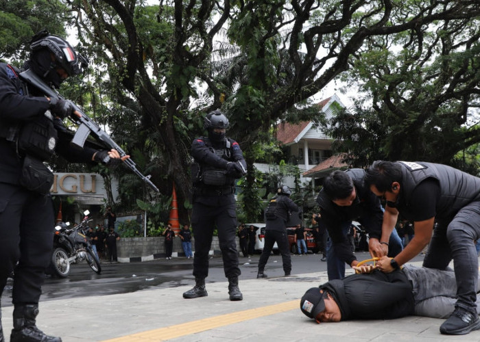 TULUNGAGUNG, MEMORANDUM - Bertempat di halaman Pemkab Tulungagung, ratusan anggota Polri, TNI dan Satpol PP mengikuti gelar simulasi Sistem Pengamanan Kota (Sispamkota), Jumat (13/10/2023).